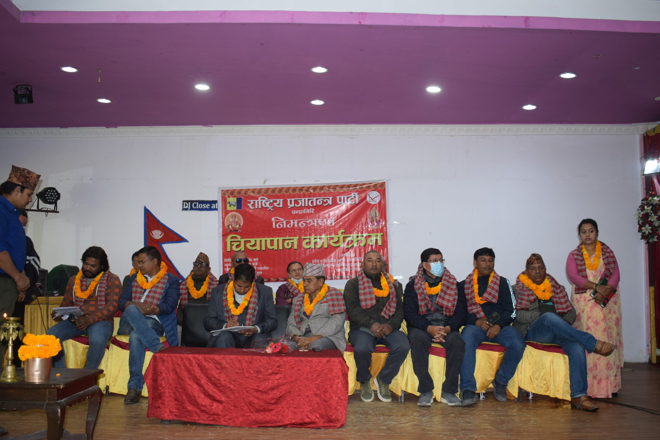 राप्रपा चन्द्रागिरि नगर अध्यक्ष रन्जन गिरिको सभापतित्वमा सम्पन्न कार्यक्रममा प्रमुख अतिथि पूर्व मन्त्री एवम् राप्रपा नेता बिक्रम बहादुर थापा, विशेष अतिथि राप्रपा काठमाण्डौँ जिल्ला अध्यक्ष नवराज सिम्खडा, महानगर अध्यक्ष केदार बहादुर धमला, अतिथिहरु राप्रपा केन्द्रीय सदस्य देवेन्द्र प्रधान, राम कुमार रिजाल, लक्ष्मी देशार, इन्दिरा मिश्र, आशा लामा, क्षेत्र नं ९ प्रदेश ख का अध्यक्ष दिलिप कुमार कार्की, क्षेत्र नं १० प्रदेश ख का अध्यक्ष अजय श्रेष्ठ, जिल्ला सदस्य मुरारी कार्की लगाएतका नेताहरुको उपस्थीति रहेको थियो ।